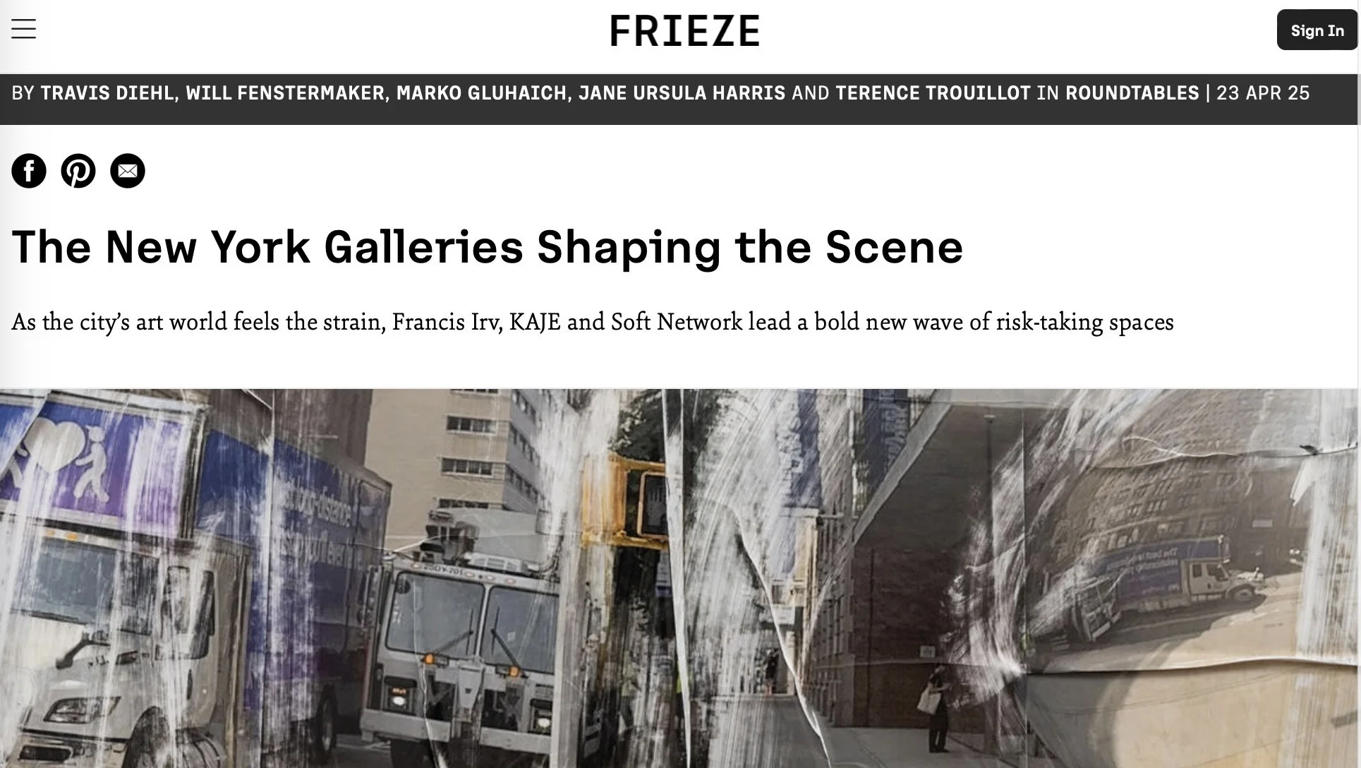 MY FEATURE IN FRIEZE ON NEW YORK GALLERIES SHAPING THE SCENE